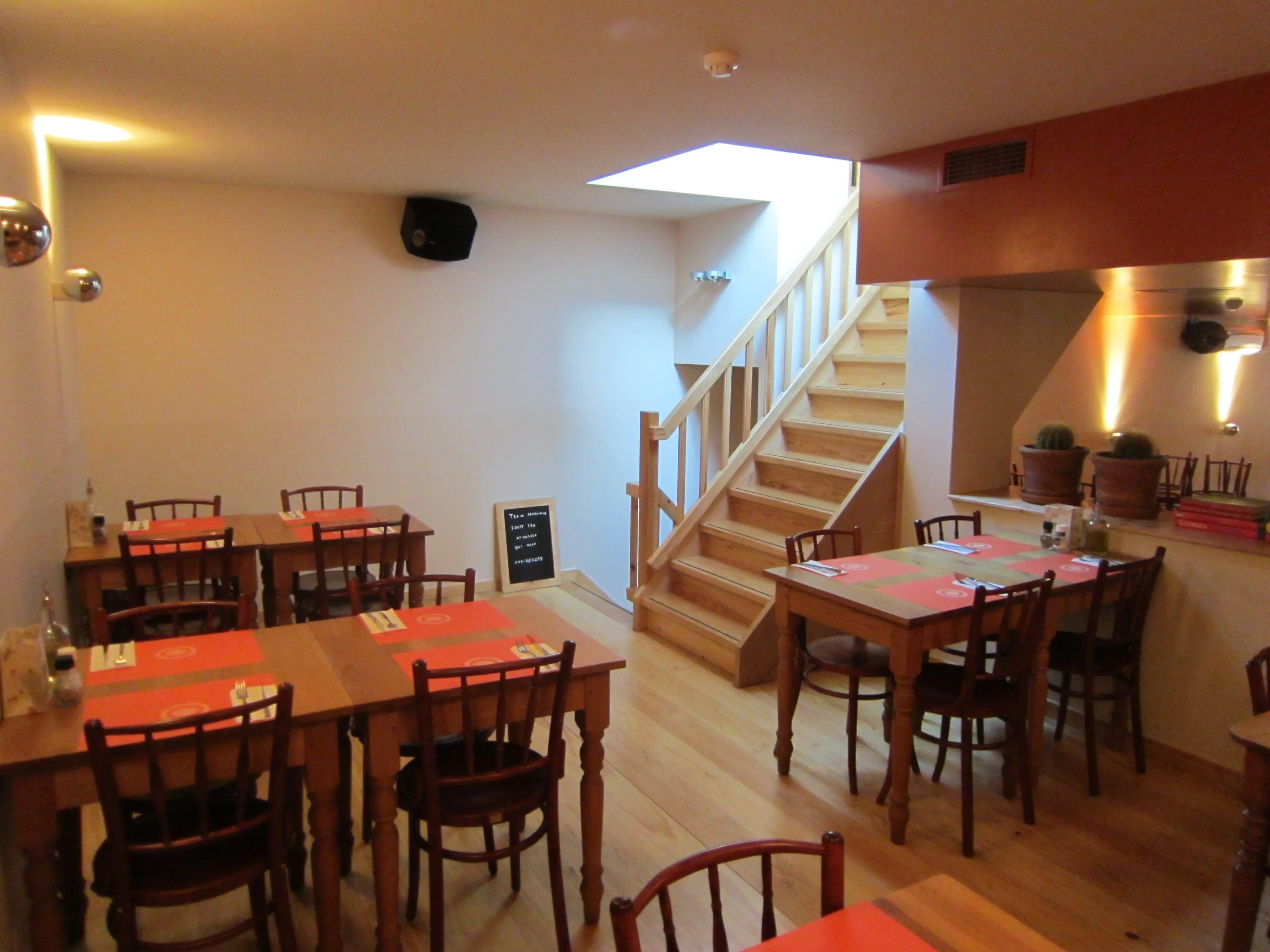Het bestaande restaurant op de begane grond geheel gestript en opnieuw opgebouwd. Uitbreiding door aan de achterzijde een split-level verdieping erin te bouwen voor de keuken en extra eetgelegenheid. De bestaande gewelfde kelder gerestaureerd en op de bovenliggende verdiepingen een geheel nieuwe inrichting opgebouwd voor 2 studio's en een appartement.